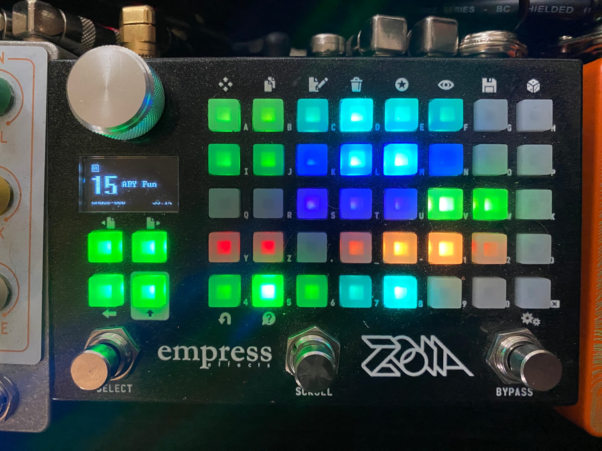 - Mid-song pedal changes: In the Oh No song "You++_Scientists" at 1:18 there's a moment where a loop slowly degrades until 1:42, then at 1:45 it turns into a synthy glitch freakout. This was recorded live in one take & achieved using a string of MIDI CC messages sent to my Ottobit Jr and Tensor via the ZOIA.